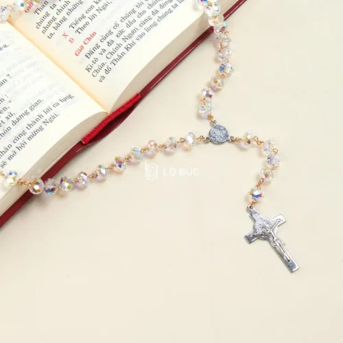 Chuỗi Mân Côi 50 Kinh Pha Lê Áo Hạt Tròn – Sắc Nét Của Tinh Thể, Tôn Vinh Sự Thanh Khiết