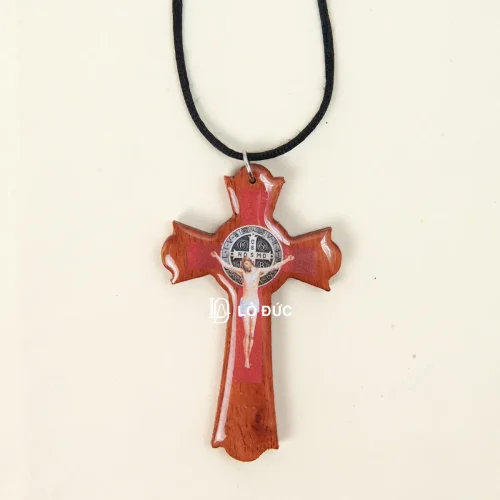 Thánh Giá Gỗ Nâu Đỏ In Ảnh Thánh – Niềm Tin Kiên Định Vào Chúa