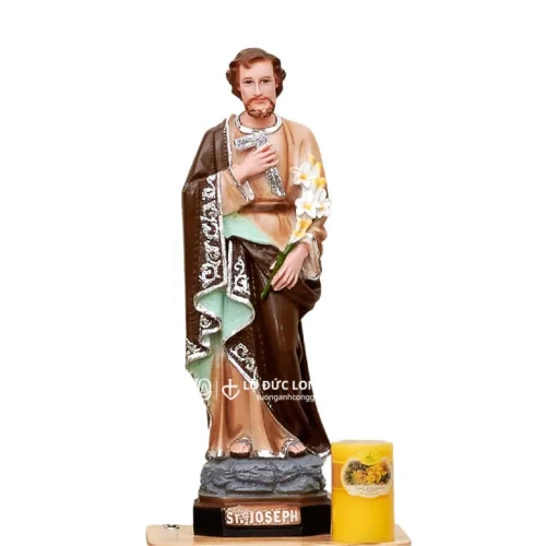 Tượng Thánh Giuse Thợ Composite – Vẻ Đẹp Trang Nghiêm Với Viền Áo Thiếc Màu Vàng, Bạc Lấp Lánh