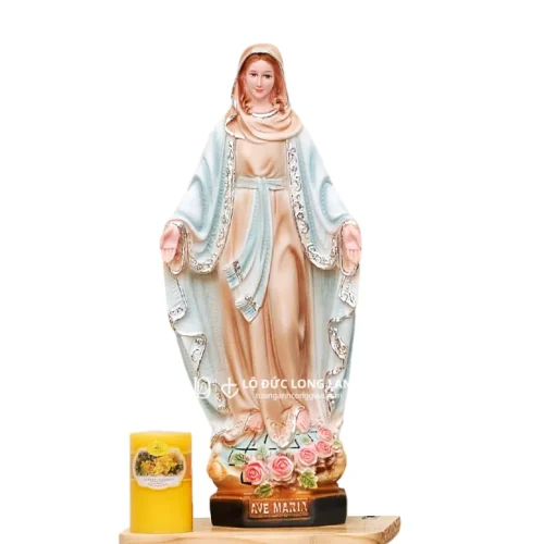 Tượng Đức Mẹ Ban Ơn Composite – Vẻ Đẹp Trang Nghiêm Với Viền Áo Thiếc Màu Vàng, Bạc Lấp Lánh