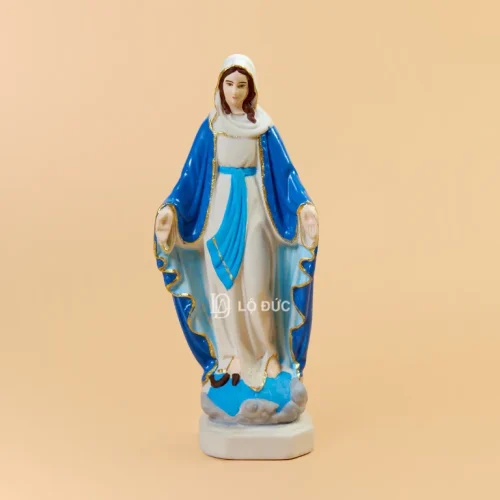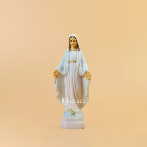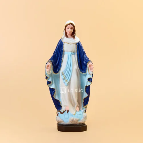 Tượng Đức Mẹ Ban Ơn Với Thân Y Phục Khắc Bài Kinh Kính Mừng – Tượng Polyresin Cao Cấp BEC