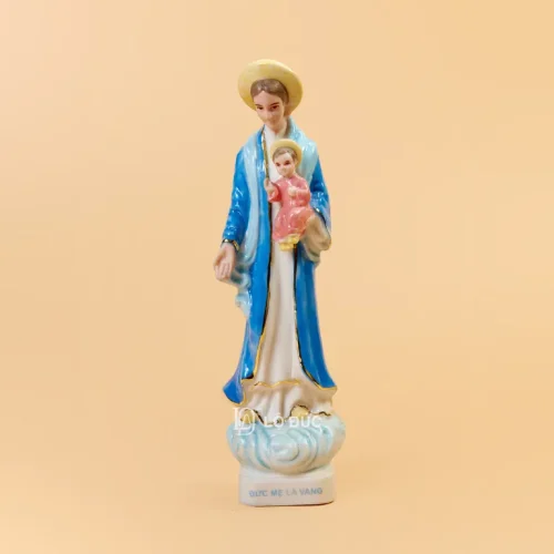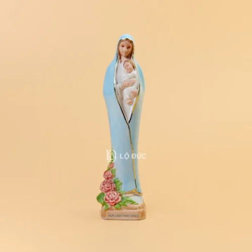 Tượng Đức Mẹ Bế Chúa Hài Đồng Với Y Phục Hoa Văn Brocade – Tượng Resin Nhập Khẩu Cao Cấp