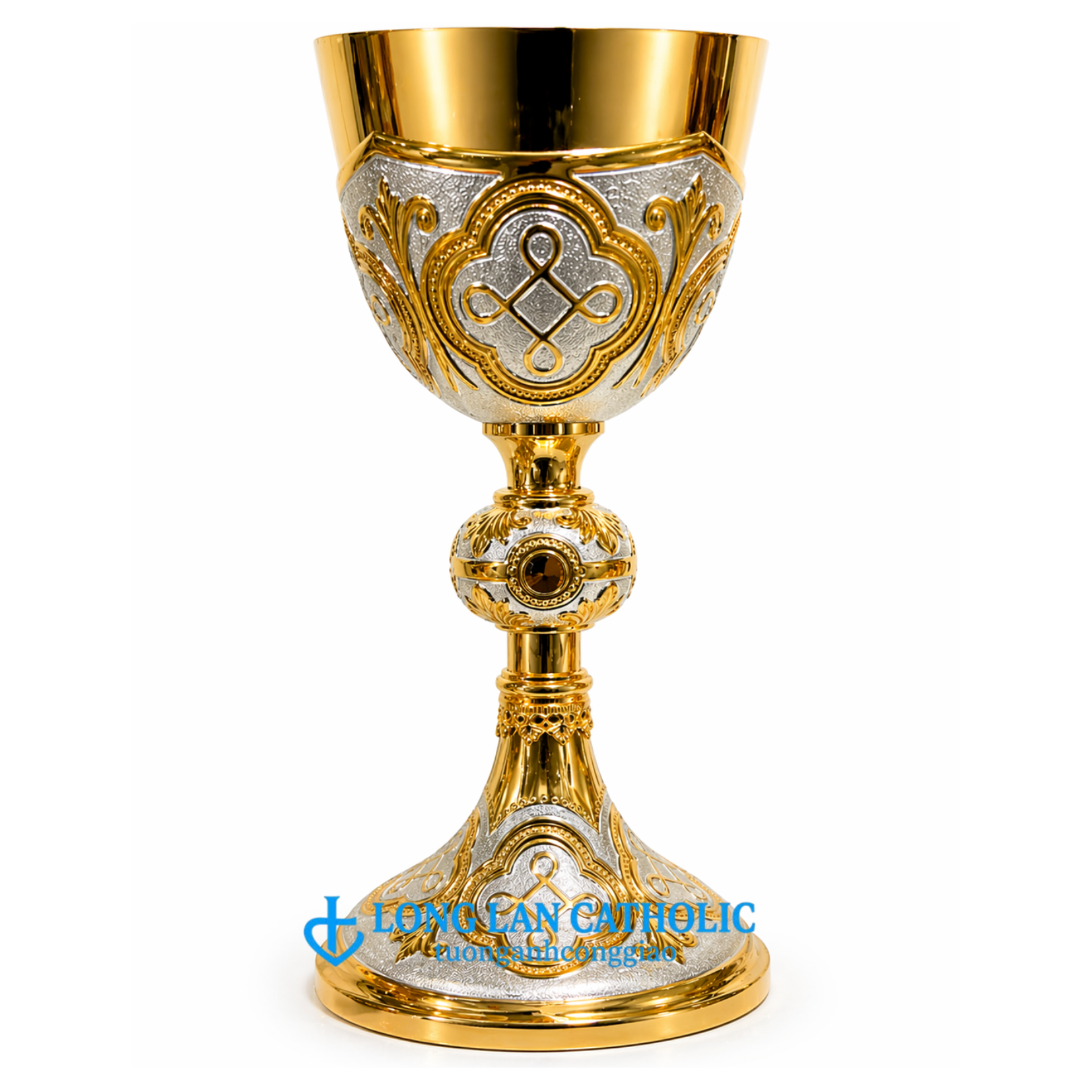 Chén Lễ Chạm Nổi Thánh Tượng Cao Cấp – Mạ Vàng Phối Tượng Bạc Đá Cam – Mã # ML 09