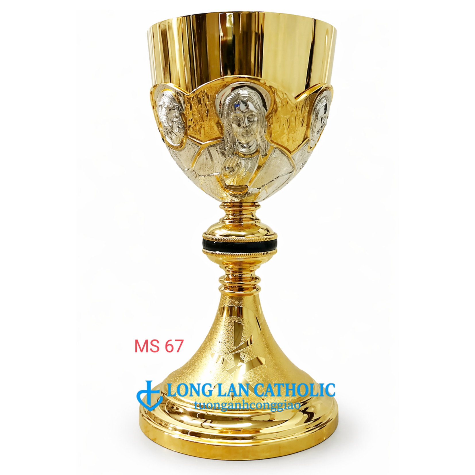 Chén Lễ Chạm Nổi Chân Dung Chúa & Các Thánh – Mạ Vàng Phối Bạc Cao Cấp – Mã # MS 67