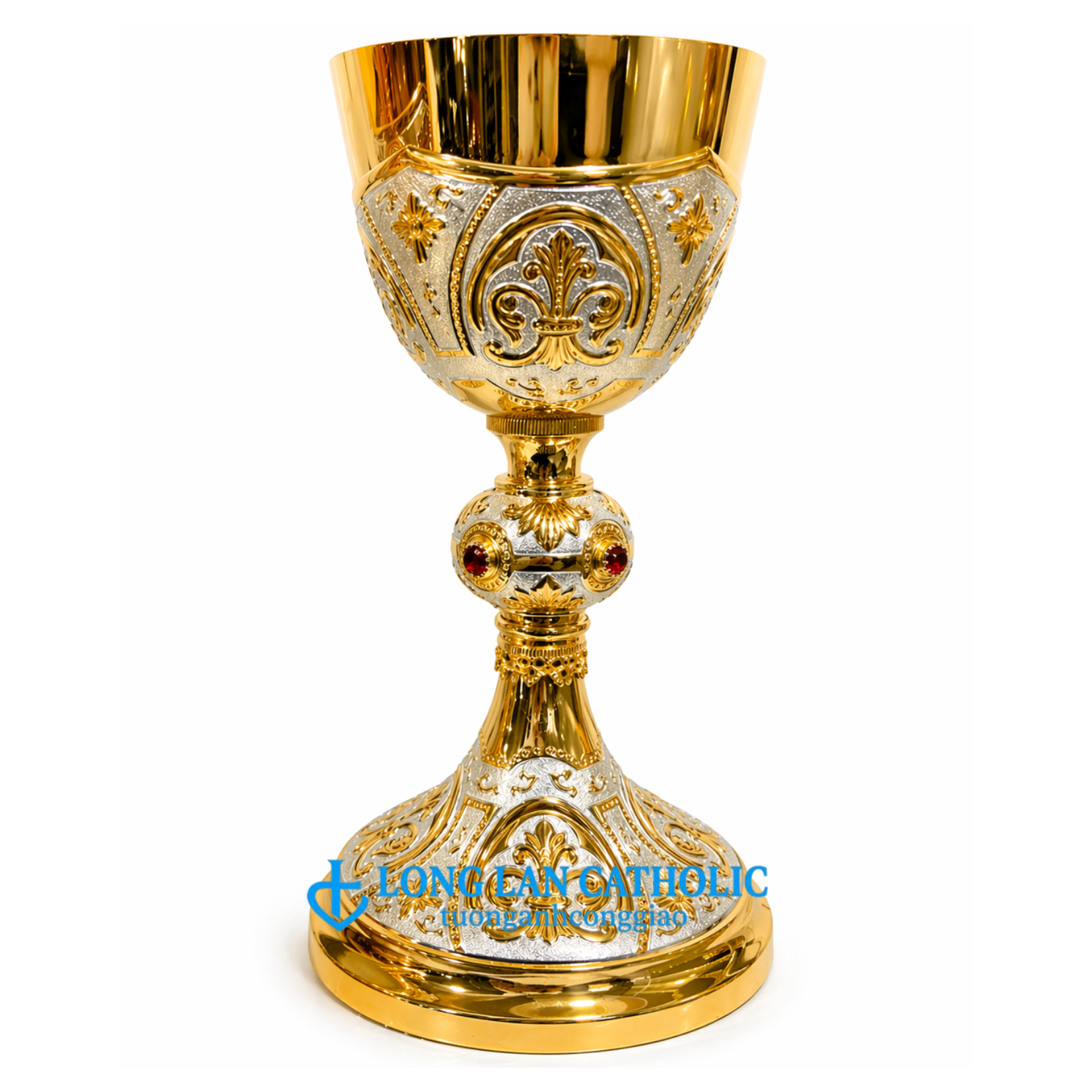 Chén Lễ Cao Cấp Phối Màu Vàng Bạc – Chạm Khổi Hình Tượng Thánh & Hoa Văn Bông Lúa – Mã # ML 02