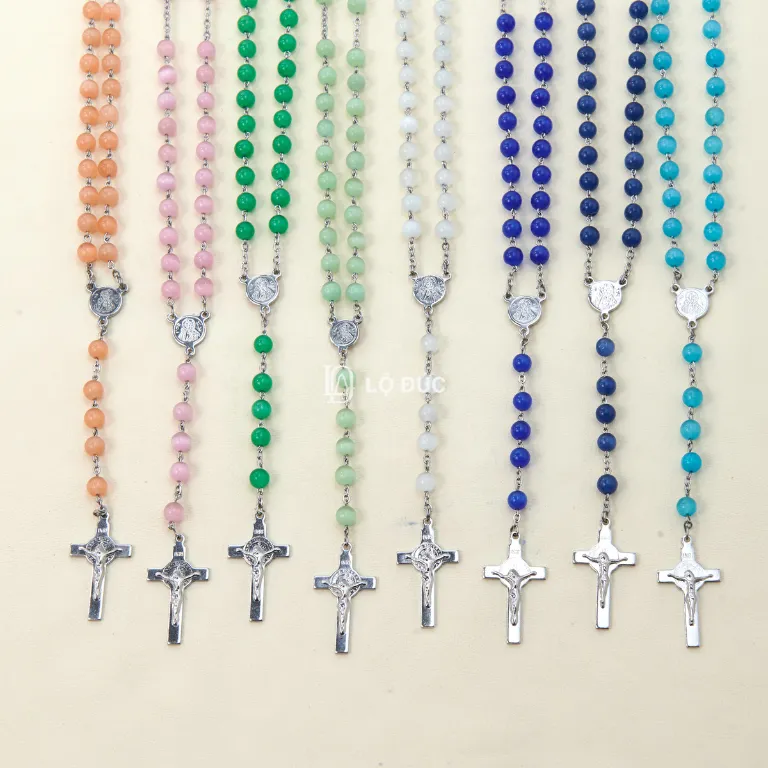 - Bộ Sưu Tập 8 Màu Đa Dạng: Với 8 lựa chọn màu sắc phong phú, từ tông pastel nhẹ nhàng, thanh lịch đến tông màu đậm cá tính, bạn có thể dễ dàng tìm thấy chuỗi Mân Côi phù hợp với sở thích và phong cách riêng. Đây không chỉ là vật phẩm cầu nguyện mà còn là một món trang sức tôn vinh đức tin.