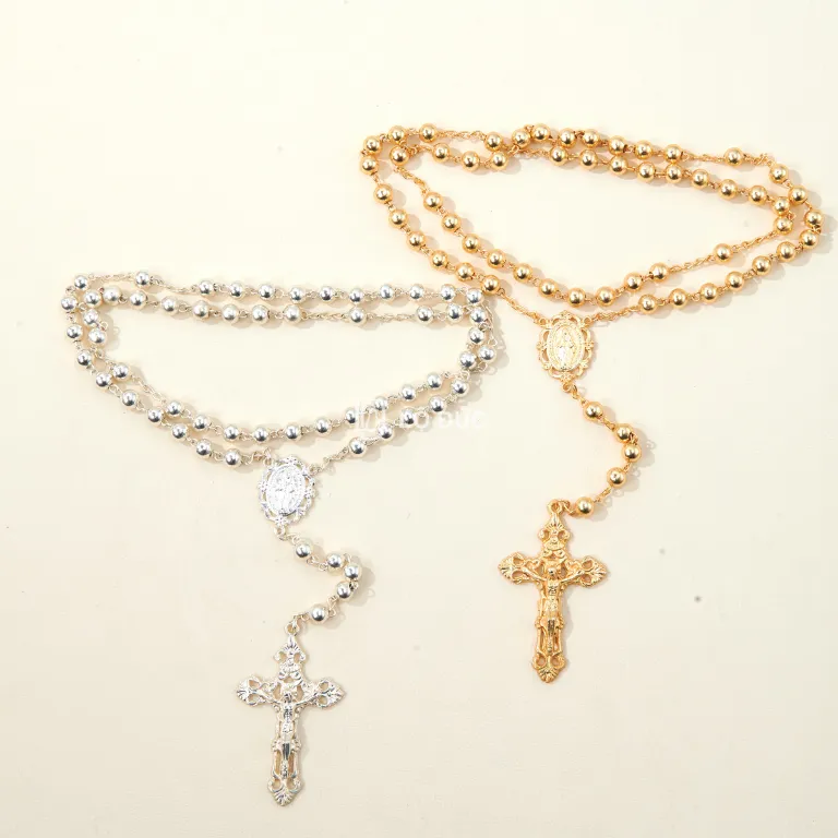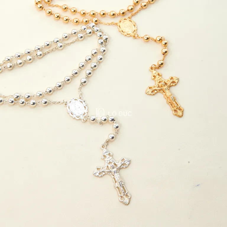 - Chất liệu: Được chế tác từ titan cao cấp, chuỗi Mân Côi có độ bền vượt trội và sáng bóng theo thời gian với hai lựa chọn màu sắc: vàng kim và bạc kim sang trọng.