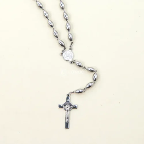 - Chất liệu hạt: Hạt inox hình oval, được đánh bóng tỉ mỉ, tạo vẻ ngoài hiện đại và bền đẹp vĩnh cửu. Chất liệu inox chống gỉ, không phai màu hay xỉn đen, giữ cho chuỗi Mân Côi luôn sáng bóng.