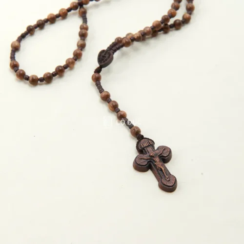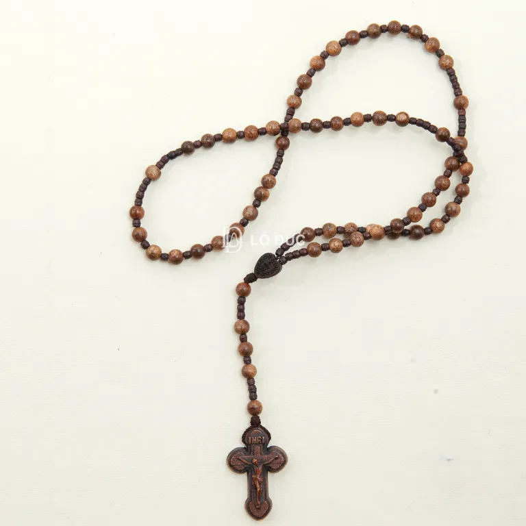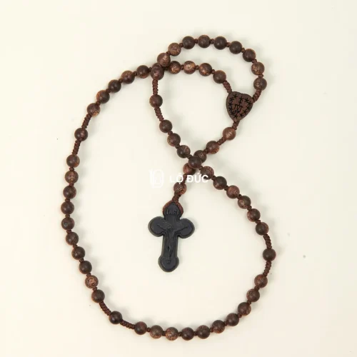 - Thiết kế: Chuỗi Mân Côi được nối bằng dây chỉ chắc chắn. Hạt gỗ hình trái tim lớn đánh dấu bắt đầu/kết thúc chuỗi.
