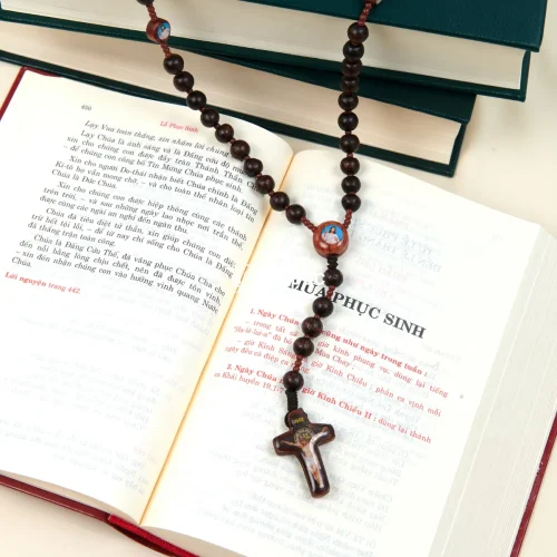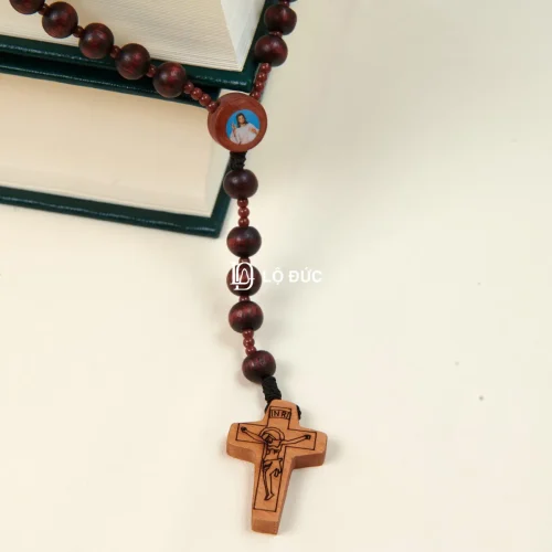 Chuỗi Mân Côi 50 Kinh Hạt Gỗ In Hình Ảnh Thánh – Dây Inox Bền Đẹp