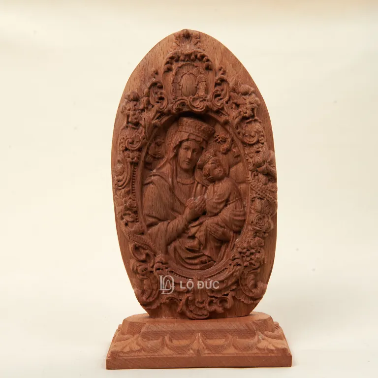 Tranh gỗ điêu khắc từ gỗ Beech nhập khẩu, với kích thước nhỏ gọn và đế chắc chắn, là điểm nhấn thiêng liêng, sưởi ấm không gian sống và cầu nguyện của gia đình bạn.