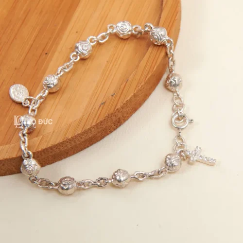 Lắc tay Mân Côi bạc cao cấp – sự kết hợp hoàn hảo giữa vẻ đẹp tinh tế và ý nghĩa đức tin sâu sắc.