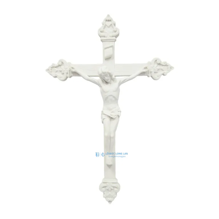 Thánh Giá bột đá được chế tác tinh xảo với hình ảnh Chúa Giêsu chịu nạn trên thập giá. Đây là biểu tượng thiêng liêng của đức tin Kitô giáo, mang lại sự bình an và nhắc nhở về tình yêu hy sinh của Chúa dành cho nhân loại.