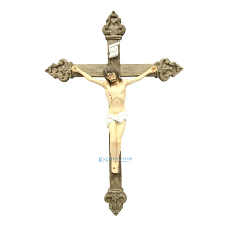 Thiết kế: Từng chi tiết được chạm khắc tỉ mỉ – từ thân mình Chúa đến hoa văn trang trí đầu thánh giá.