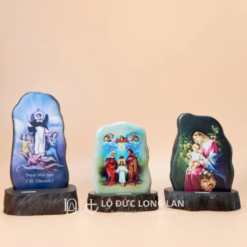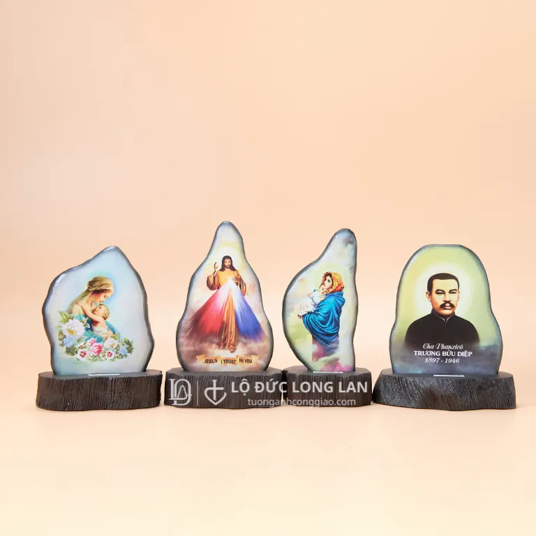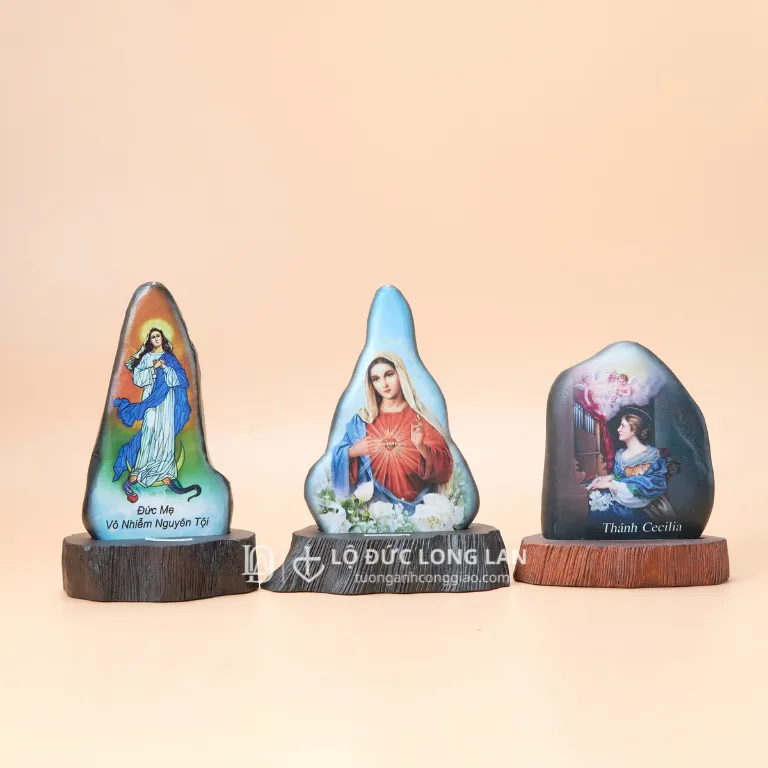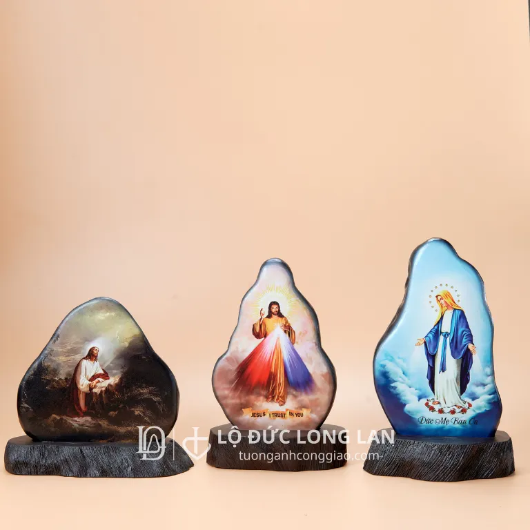 - Độc đáo và Vĩnh Cửu: Mỗi tác phẩm là duy nhất nhờ hình dạng tự nhiên không trùng lặp của đá. Công nghệ in phun UV tiên tiến giúp hình ảnh thiêng liêng trên đá luôn sắc nét, sống động, thách thức thời gian và thời tiết.