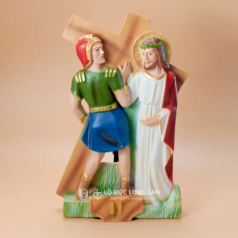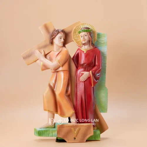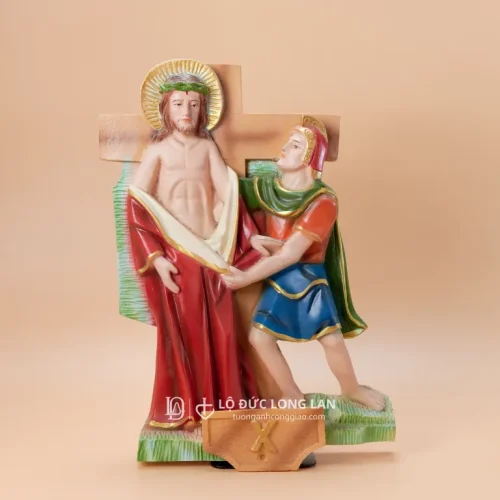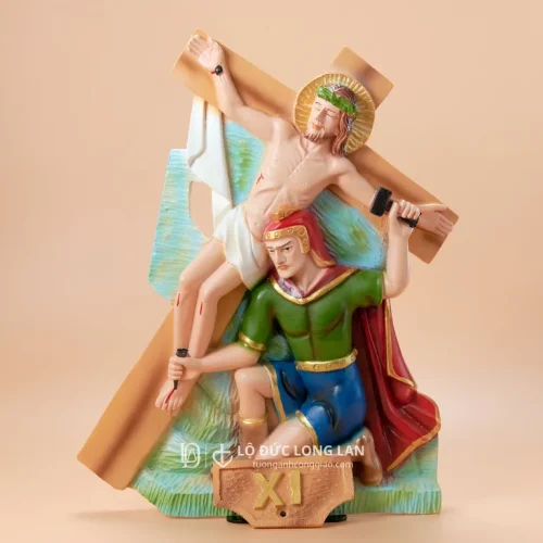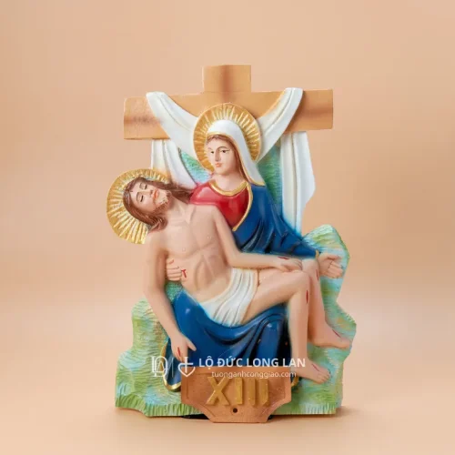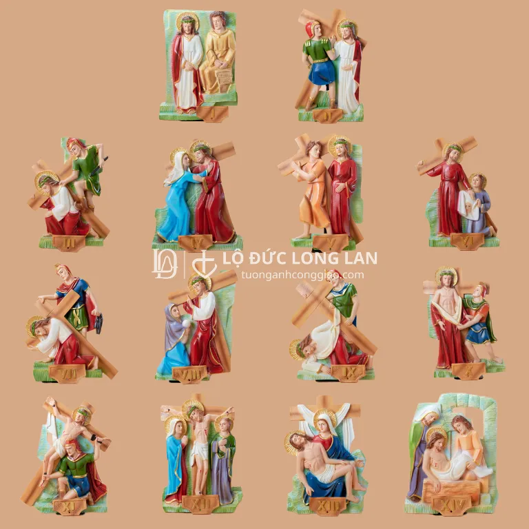 - Thiết kế sống động: Bộ 14 Chặng Đàng Thánh Giá được chế tác từ chất liệu composite cao cấp, mang lại độ bền vượt trội và khả năng chống chịu thời tiết tốt. Sản phẩm được phủ màu đầy đủ sắc, sử dụng sơn chuyên dụng giúp từng chi tiết trở nên chân thực và sống động như thật.