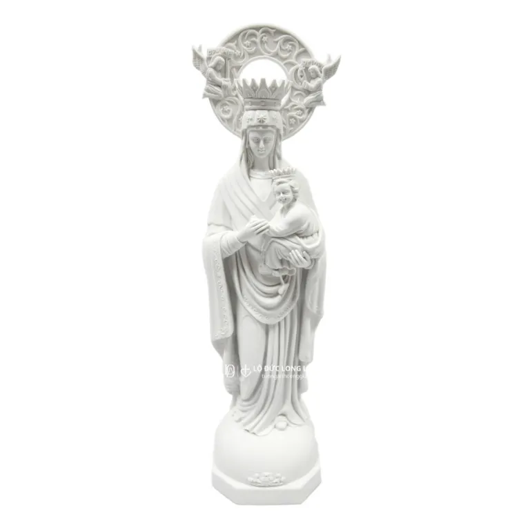 Tượng Đức Mẹ Hằng Cứu Giúp bột đá được chế tác tinh xảo, tái hiện hình ảnh Đức Mẹ bồng Chúa Hài Đồng với ánh nhìn đầy từ ái. Đây là mẫu tượng mang giá trị thiêng liêng, gắn liền với lòng sùng kính Đức Mẹ trên khắp thế giới.
