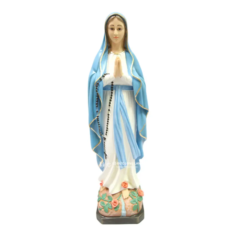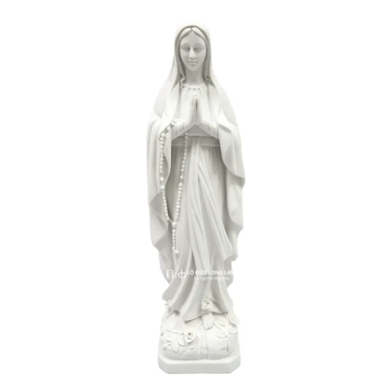 Tượng Đức Mẹ Lộ Đức bột đá được chế tác tinh xảo, thể hiện hình ảnh Đức Mẹ khoác áo trắng, choàng xanh, tay chắp cầu nguyện, mang vẻ đẹp thanh thoát và linh thiêng. Đây là mẫu tượng gắn liền với biến cố Đức Mẹ hiện ra tại Lộ Đức – nơi nổi tiếng về các phép lạ và ơn chữa lành.