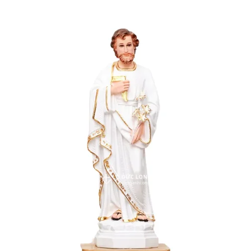 - Vẻ đẹp tinh xảo: Tượng Thánh Giuse Thợ được chế tác từ chất liệu composite cao cấp, có độ bền vượt trội và khả năng chống chịu tốt với thời gian. Điểm nhấn đặc biệt của sản phẩm là phần viền áo được thiếc màu bạc hoặc vàng lấp lánh, tạo hiệu ứng ánh sáng rực rỡ và trang nghiêm.